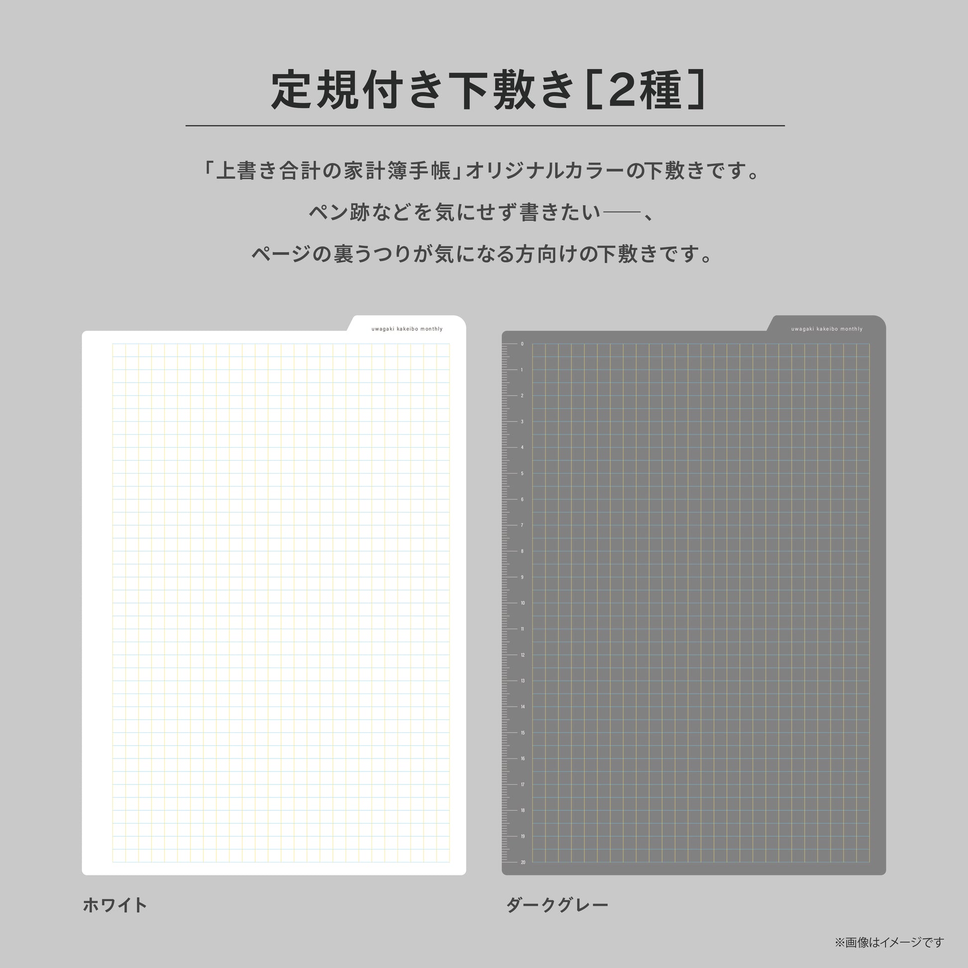 「上書き合計の家計簿手帳」オリジナルカラーの下敷きです。