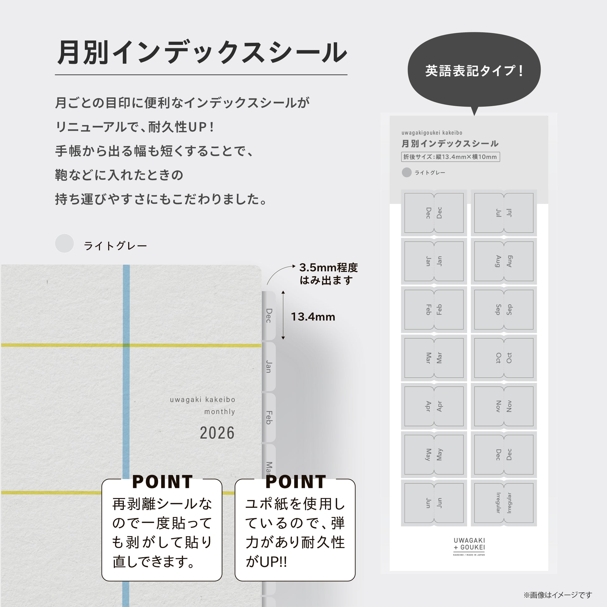 月ごとの目印に便利なインデックスシールが